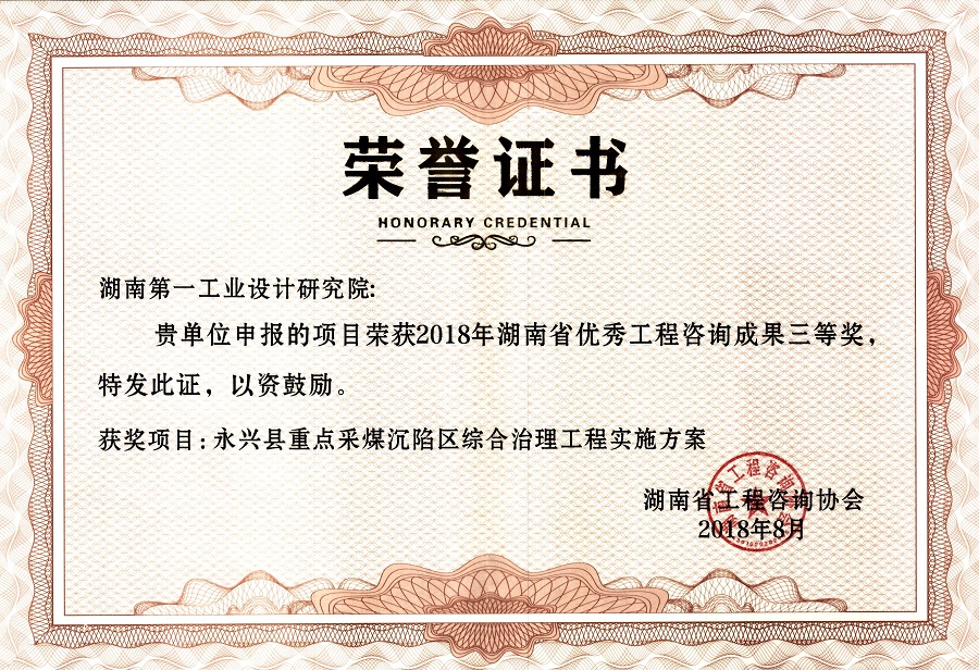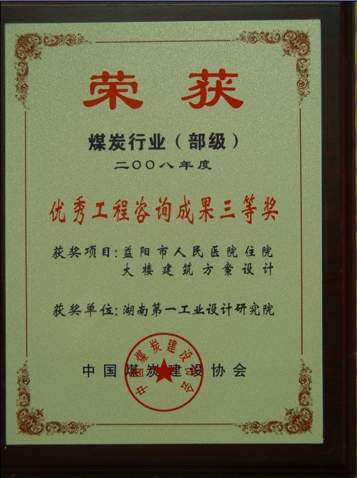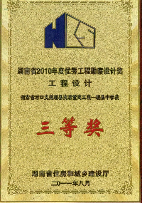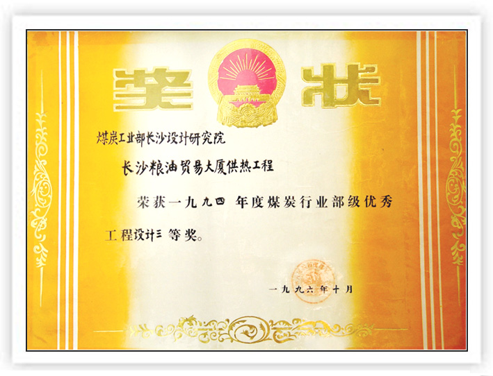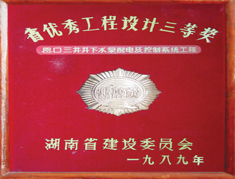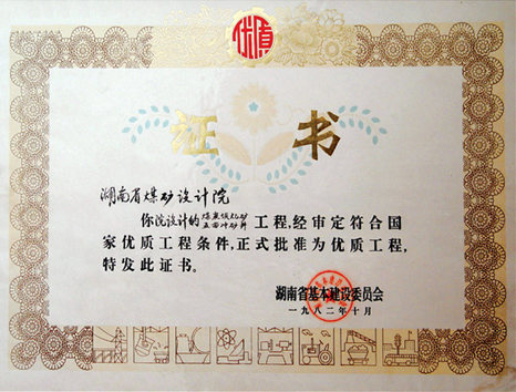 湖南省優(yōu)秀設(shè)計表揚(yáng)金獎(1984)