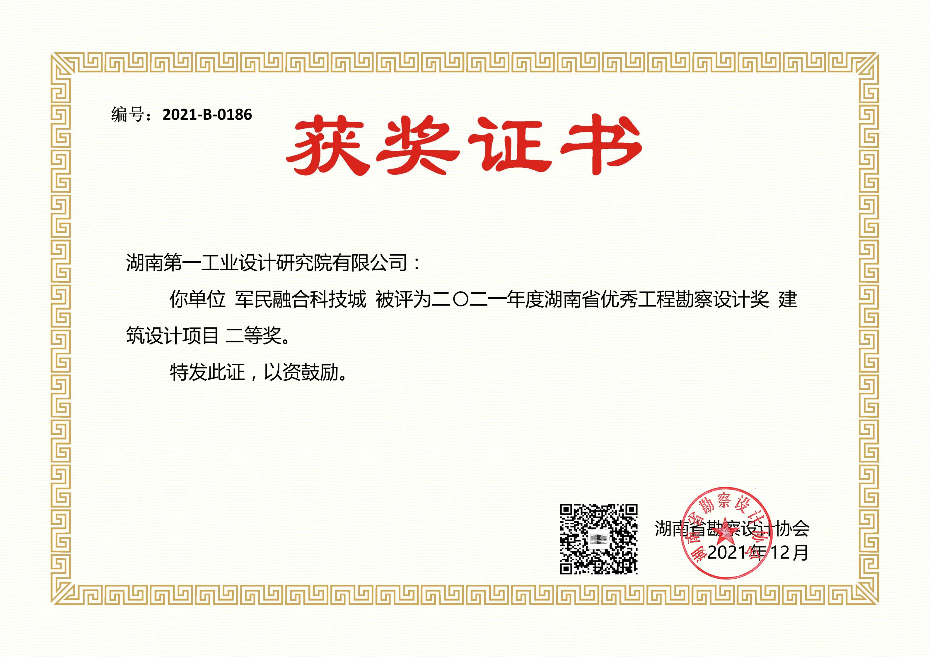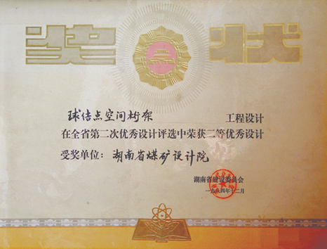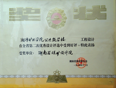 湖南省優(yōu)秀設(shè)計項目二等獎(1984)